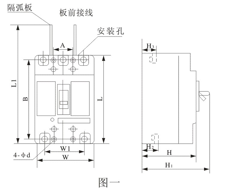 5.3?本系列断路器飞弧距离为200mm,断路器的进线端应用绝缘材料包扎200mm或用绝缘板把相间隔开。