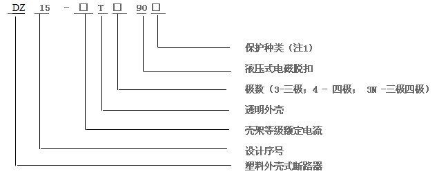 DZ15系列透明料外壳式断路器(以下简称断路器)适用于交流50HZ,额定电压至380V,额定电流至63A(100A)的电路中。作为配电、电动机的过载及短路保护用。亦作为线路不频繁转换及电动机不频繁起动之用。本产品符合GB14048.2.2标准。