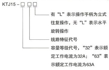 由操作机构、凸轮和触头系统及壳体三部分组成。操纵手柄带有零位自锁装置。机械传动部分位于箱体上部。立式操作手柄则直接传动轮轴,使触头组按规定程序分合,由定位螺钉装入棘轮上不同位置的定位孔,即决定操纵手柄的挡位数,左右各有6档范围,可任意选择,定位棘轮弹簧力可调,在分档清楚的前提下,通过调整棘轮弹簧力使手柄操作力在许可范围内。采用转动式双断点触头,32A、63A触头安装尺寸相同。凸轮为插入式,便于变换触头分合程序。