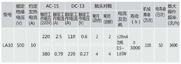 LA10按钮开关适用于交流50Hz,电压至380V及直流电压至220V的电路中,作为控制,连锁等用途。