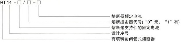 RT14型圆筒形帽型熔断器使用额定电压为交流400V,额定电流至63A的配电装置中作为短路保护。带有撞击器的熔断体与熔断器式隔离器配合使用时,可作为电动机的缺相保护。