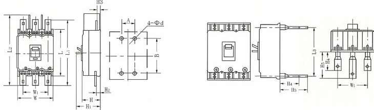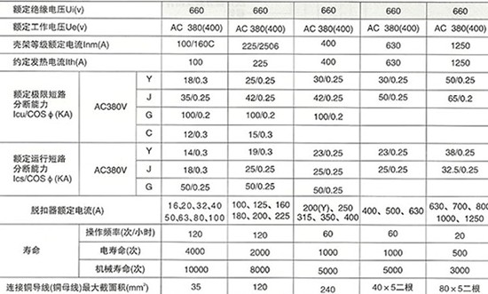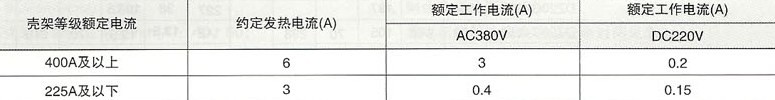 2.辅助触头400A及以上为二常开二常闭,225A以下为一常开一常闭。