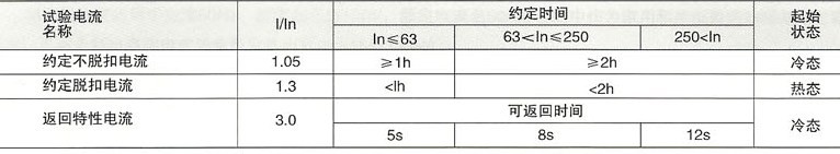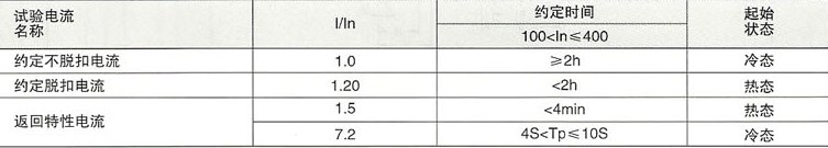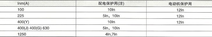 (2)配电用反时限特性见表1,电动机保护用反时限见表2